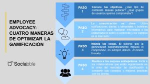 Esto va más allá de la gamificación y tiene que ver con el progreso de tu iniciativa de Employee Advocacy en su conjunto. Piensa en nombrar embajadores del programa: aquellos empleados que se encuentran regularmente en la cima del marcador; o que generan constantemente el compromiso del usuario final. Invítalos a compartir sus consejos y mejores prácticas con los demás. ¿De qué manera su actividad de compartir ha impulsado su interacción con sus audiencias en las redes sociales y el logro de los objetivos de tu empresa? ¿Las interacciones que se logran gracias a los mensajes personalizados, a las publicaciones bien programadas o al contenido específico para cada red social? Cuanto más conozcan los colaboradores sobre el valor y las mejores prácticas relacionadas al desarrollo de su empresa en las redes sociales, más actuarán en la plataforma y participarán en las últimas iniciativas de gamificación.